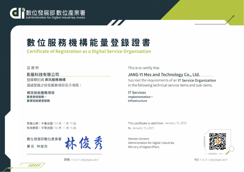響應政府智慧製造政策,正式成立「智慧製造部門」。憑藉卓越的技術整合能力,取得經濟部產業發展署AU4認證,協助機械加工業、傳產製造業降低生產管理成本、優化營運效能。